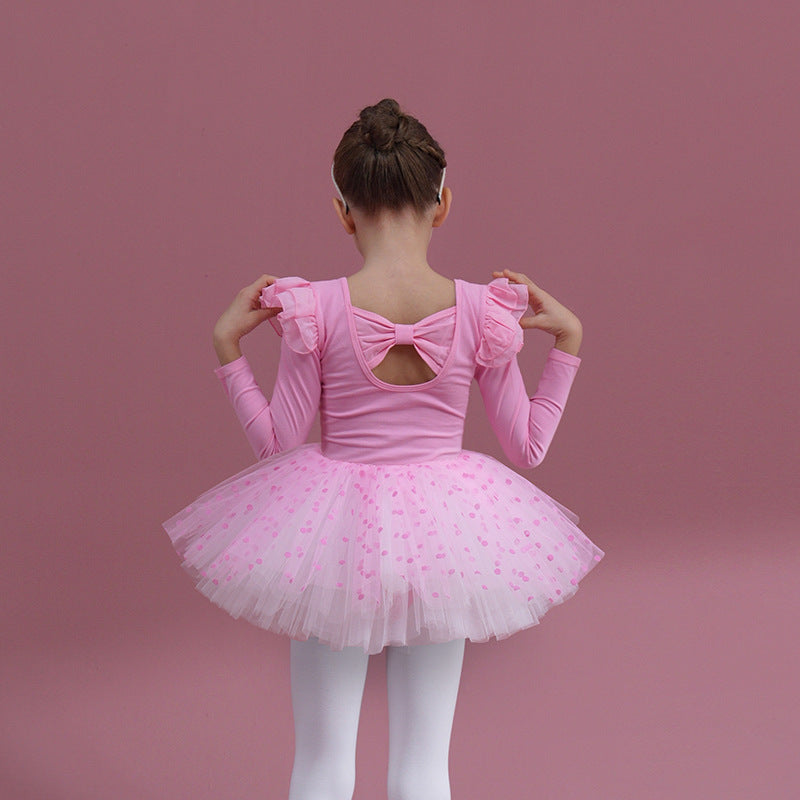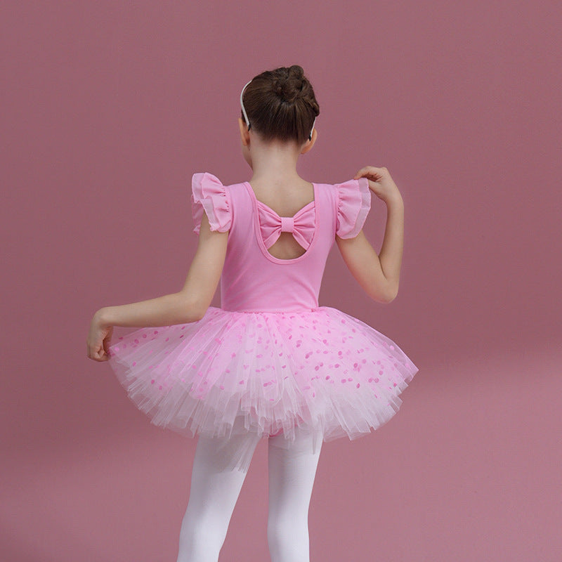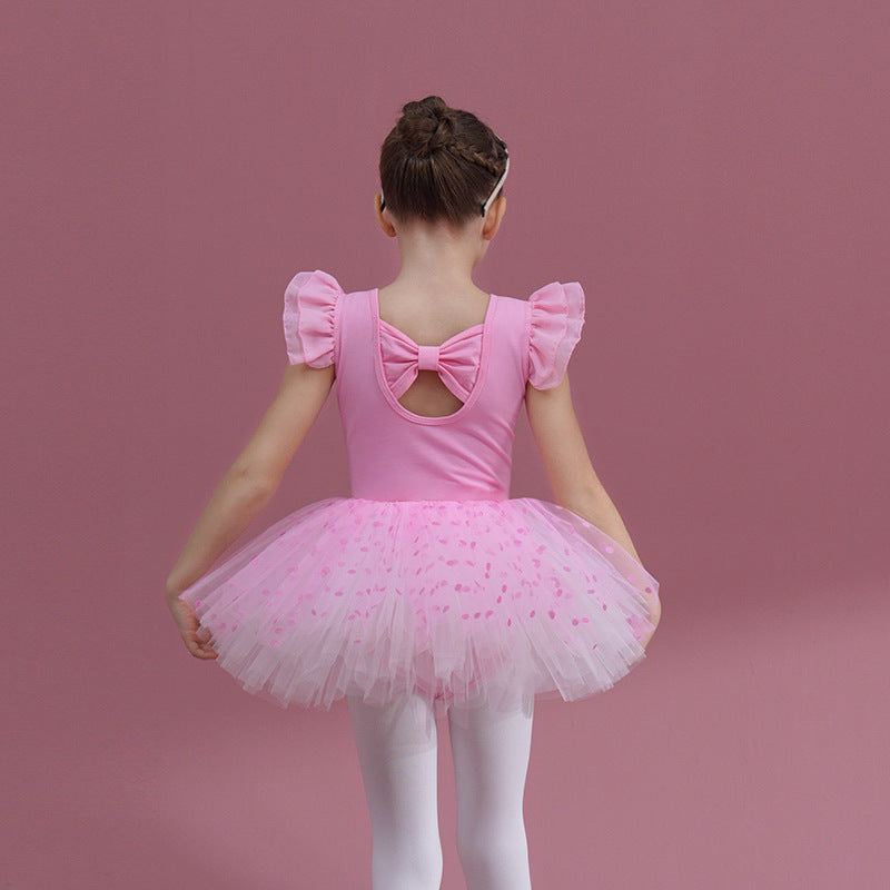 Cotton Children Dance Performance Clothing Ballet Princess dress Flutter Sleeve Detachable Tutu Dance Costume