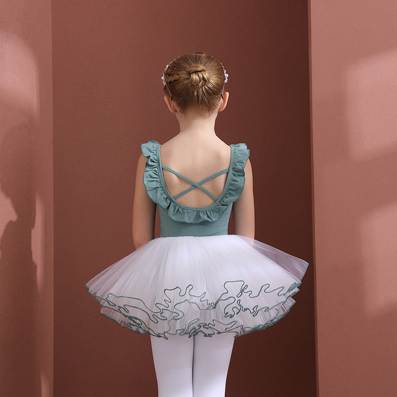 Crisscross Back purple children Ballet Leotards with white tutu Skirt Detachable dance Costume sets kids Ballerina Outfit