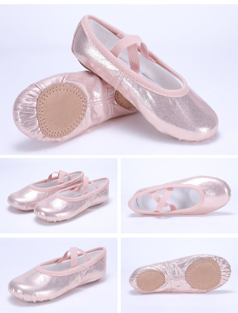 Crystal Pink Dance Shoes, PU Children's Anti-Slip Ballet Shoes, Professional Soft-Tread Cat Claw Shoes, Girls' Performance Shoes