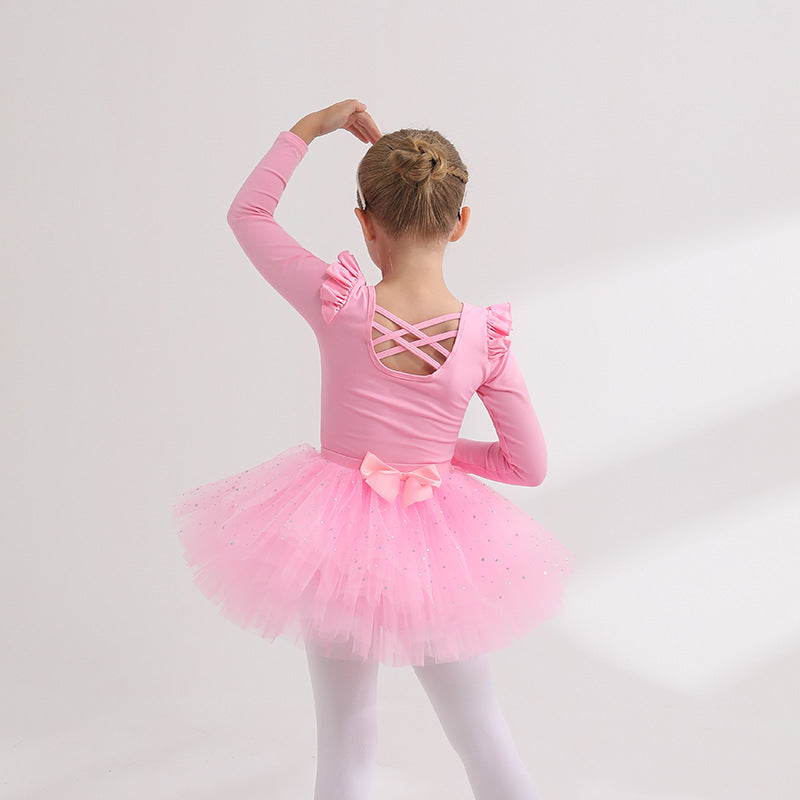 Detachable kidsTutu Dance Costume Flutter Sleeve Ballet Leotards with tutu Skirt Performance Training Costume