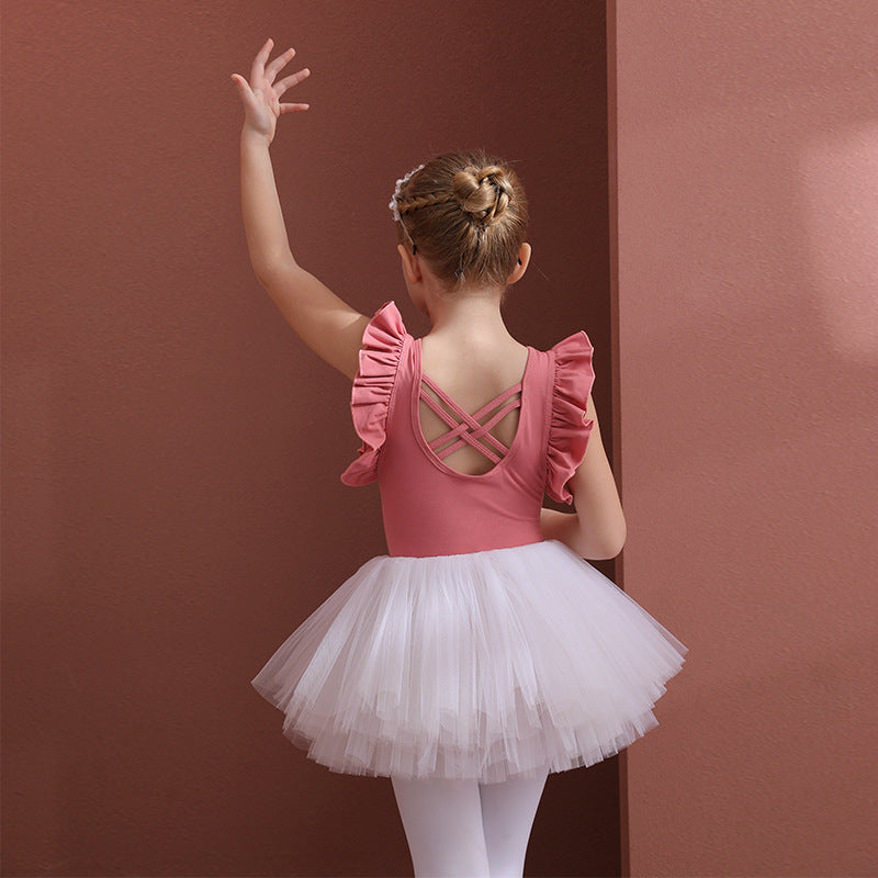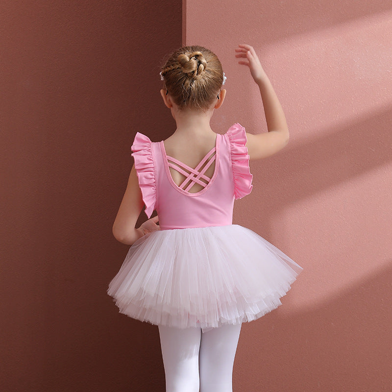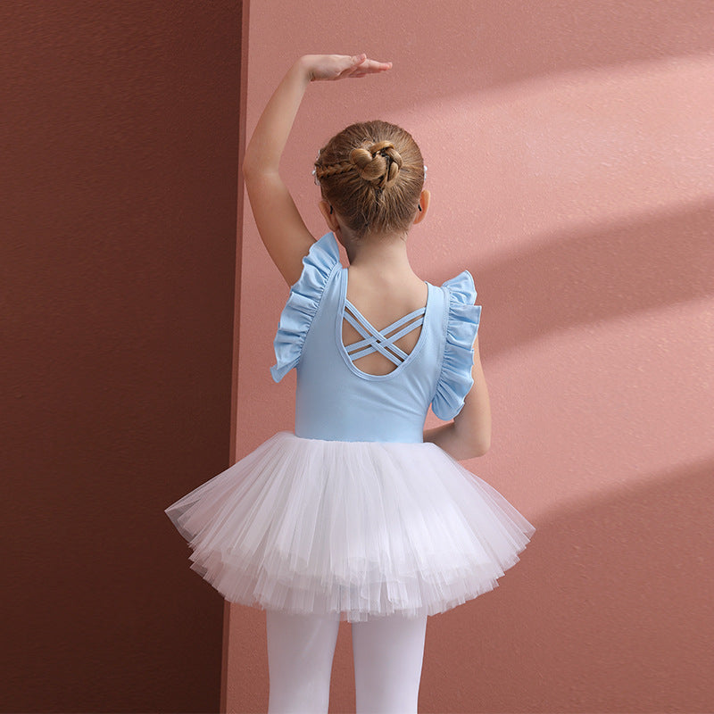 Detachable Tutu Dance Costume for girls kids Princess Little Swan Artistic Skate wears Crisscross Back cotton