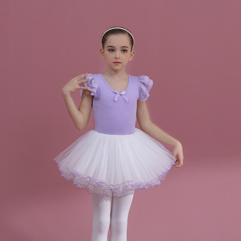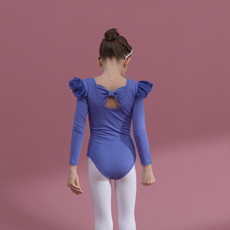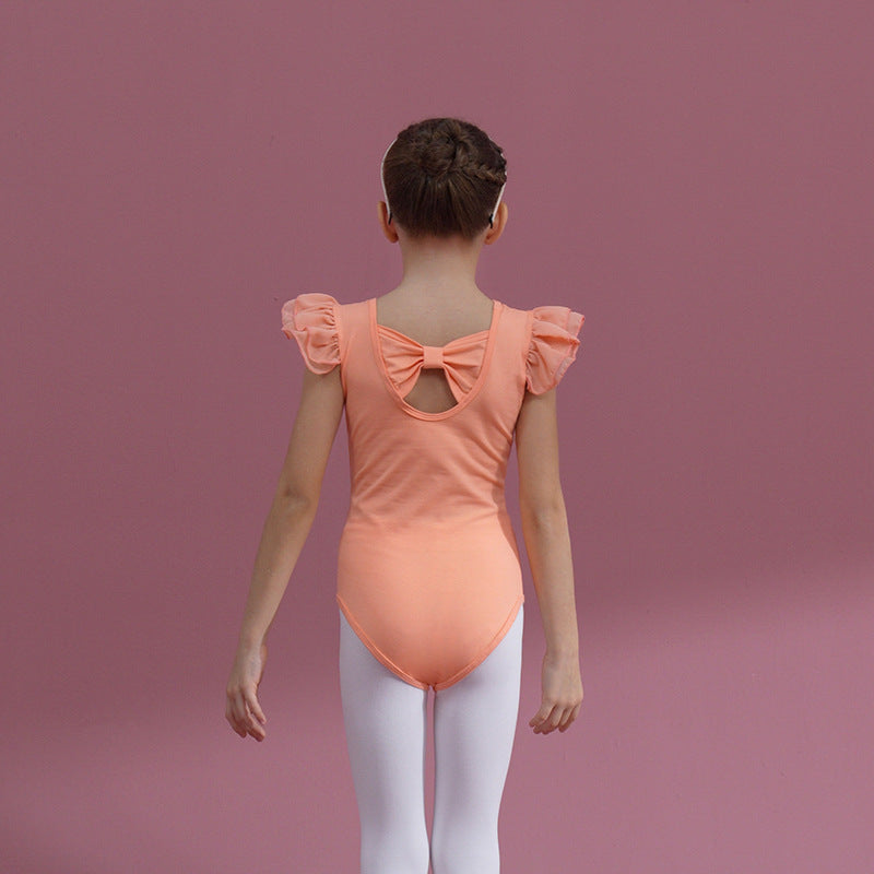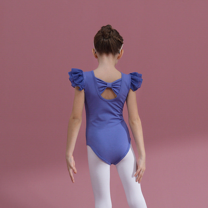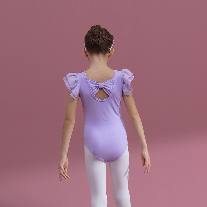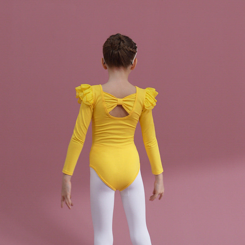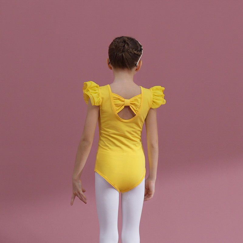 Flutter Sleeve yellow kids cotton Ballet Leotards dance jumpsuits Butterfly Back girls Dance Costume