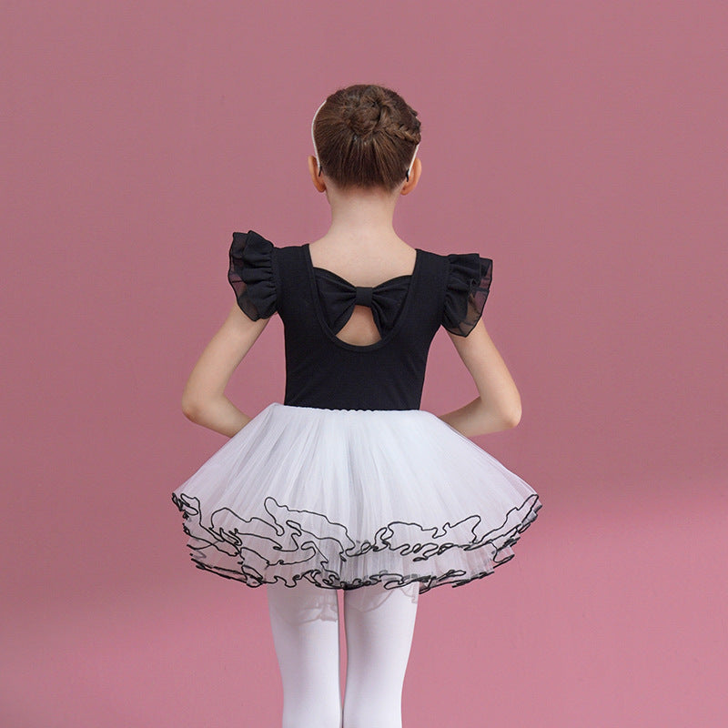 Girls Flutter Sleeve Ballet Leotards with white tutu skirt Detachable kids Princess Dance Costume Butterfly Back