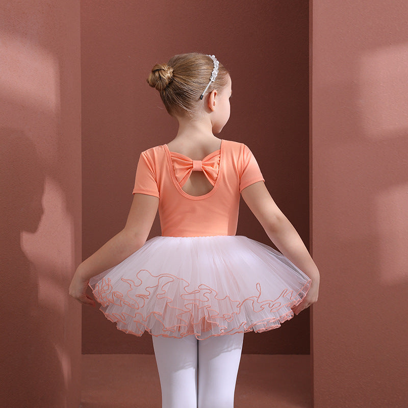 Girls Orange Ballet Leotards Knowkot Back Ballerina jumpsuit Dance Costume Performance Clothing
