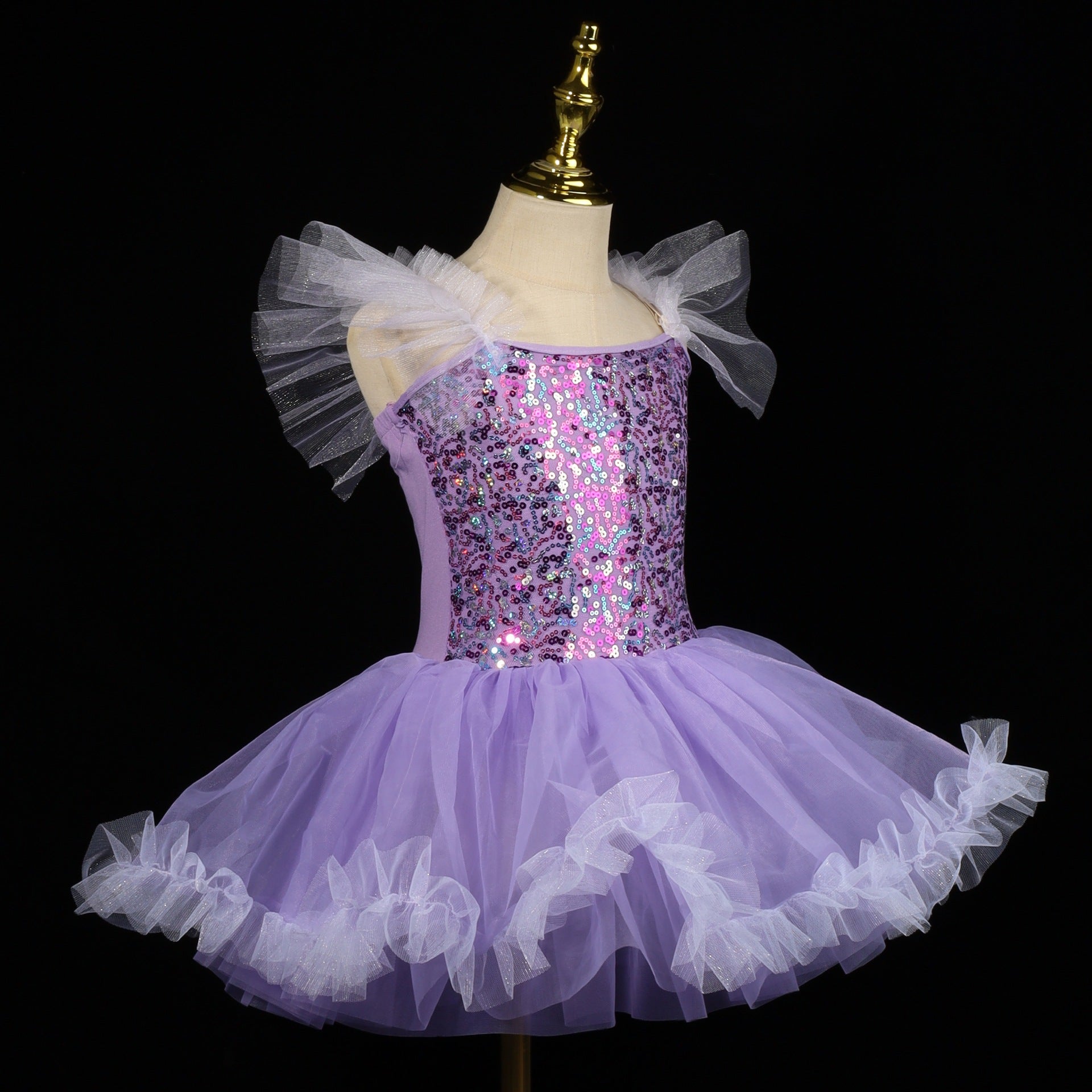 High-end ballet TUTU dress Purple sequin little swan princess dress Stage performance outfit for children's dancing dress