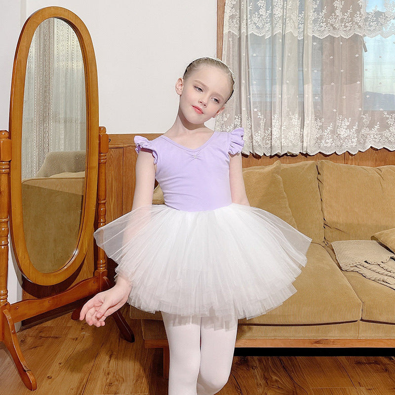High-end Kids' Ballet Dress Detachable Girl dance purple Leotards with white tutu Skirt Ballerina Outfit Performance Costume