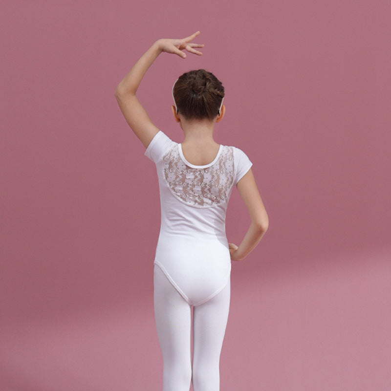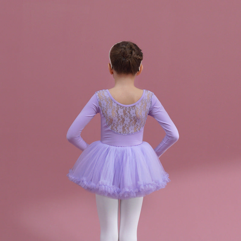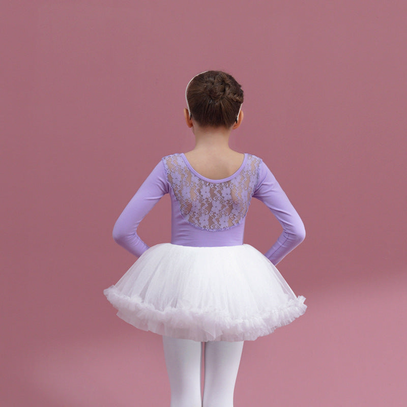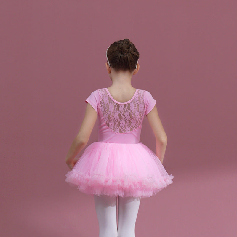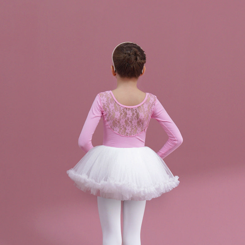 Lace back kids pink Ballet Leotards with white Skirt Detachable Dance Costume girls Ballerina Outfit Dance Costume