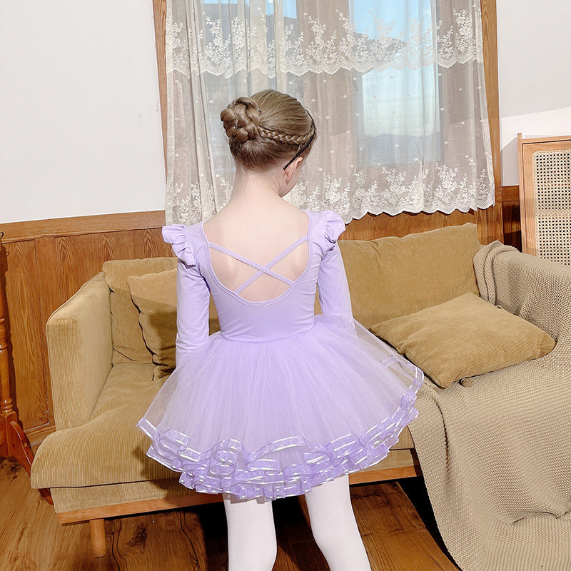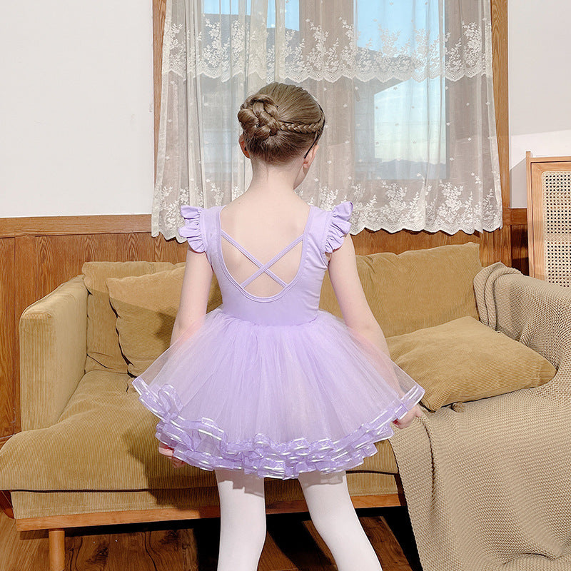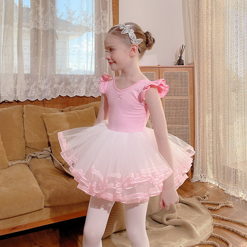 Pink Dance Costume for children cotton Ballet Leotards with white tutu Skirt detachable dance Performance Costume