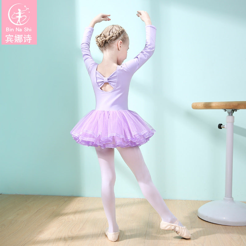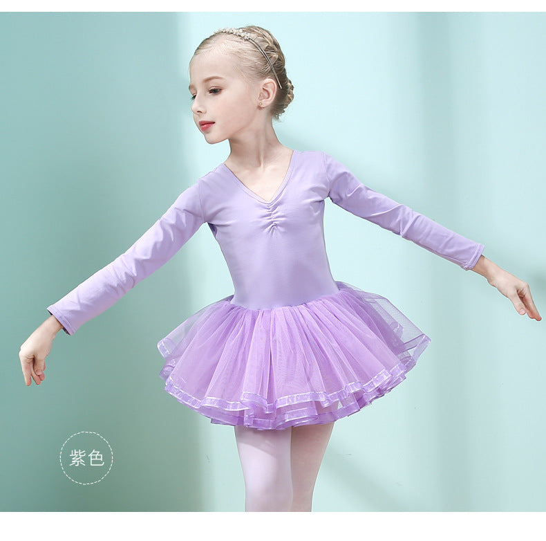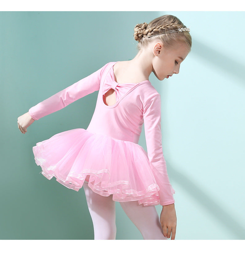 Pink High-end kids dance Princess dress  Ballerina Outfit girls Dance Performance Clothing cotton short/long sleeve