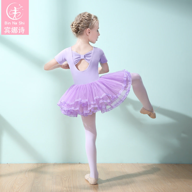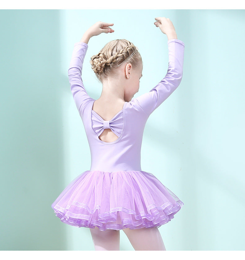 Pink High-end kids dance Princess dress  Ballerina Outfit girls Dance Performance Clothing cotton short/long sleeve