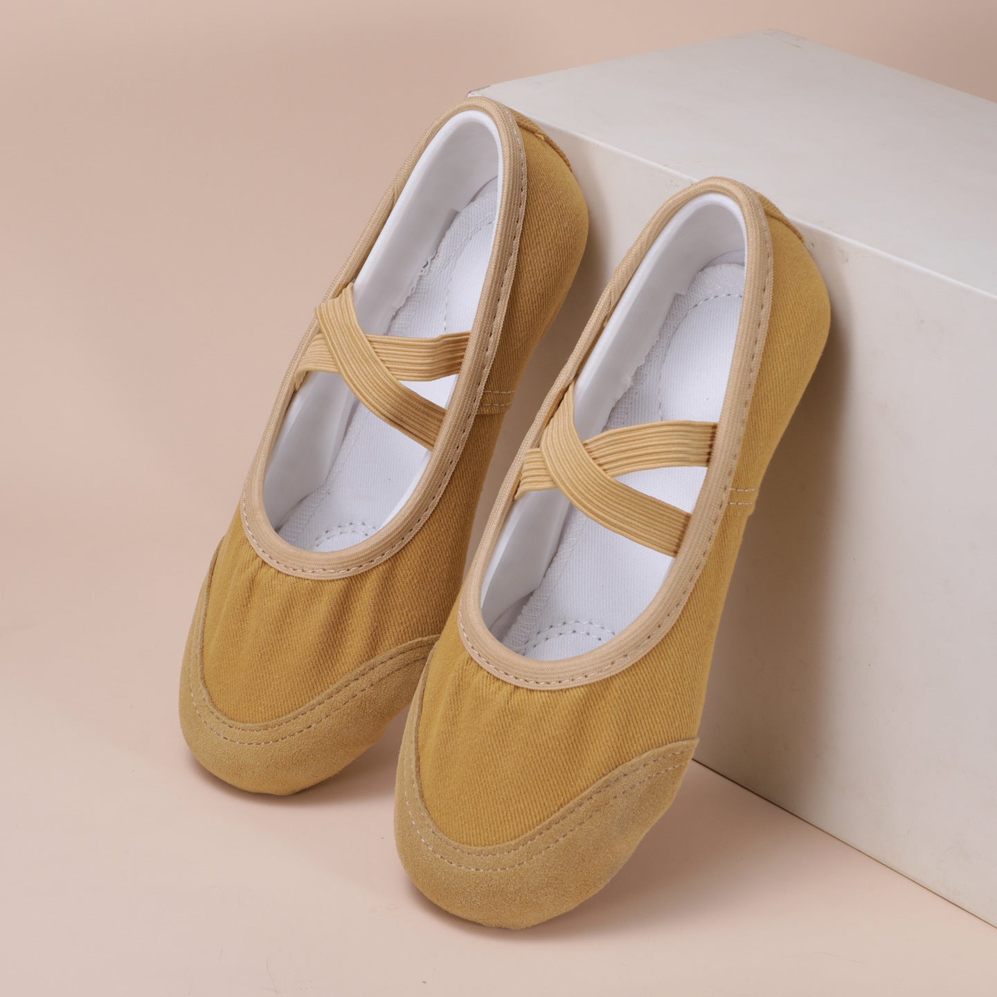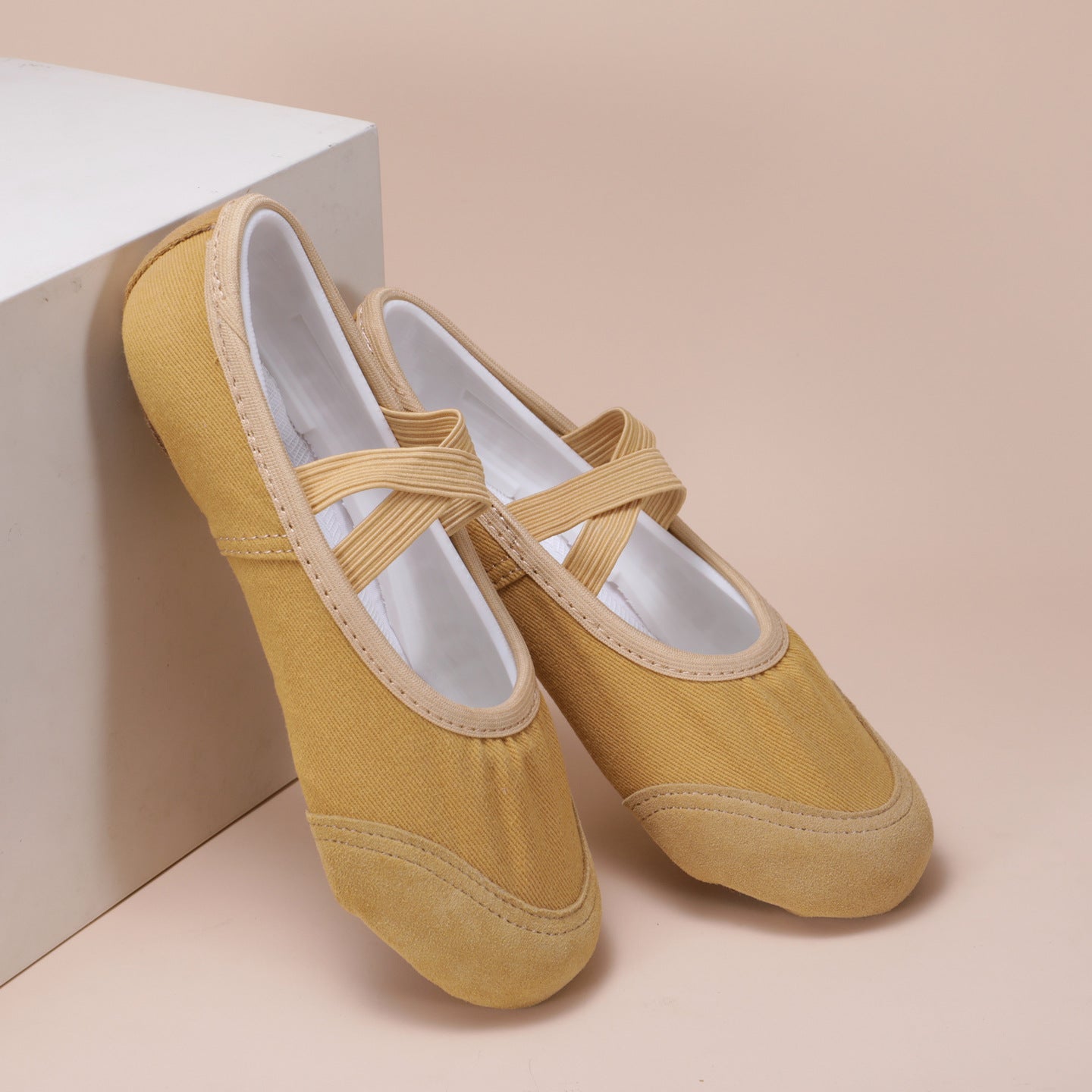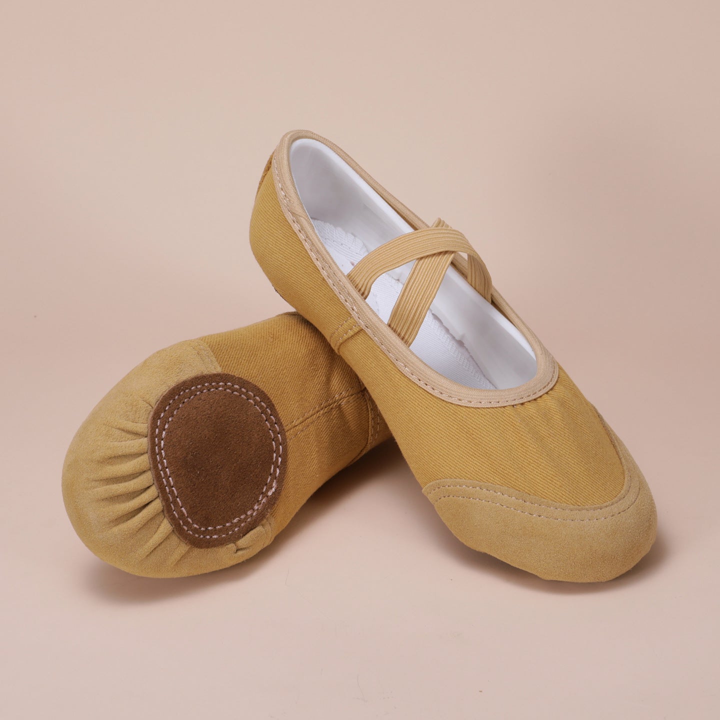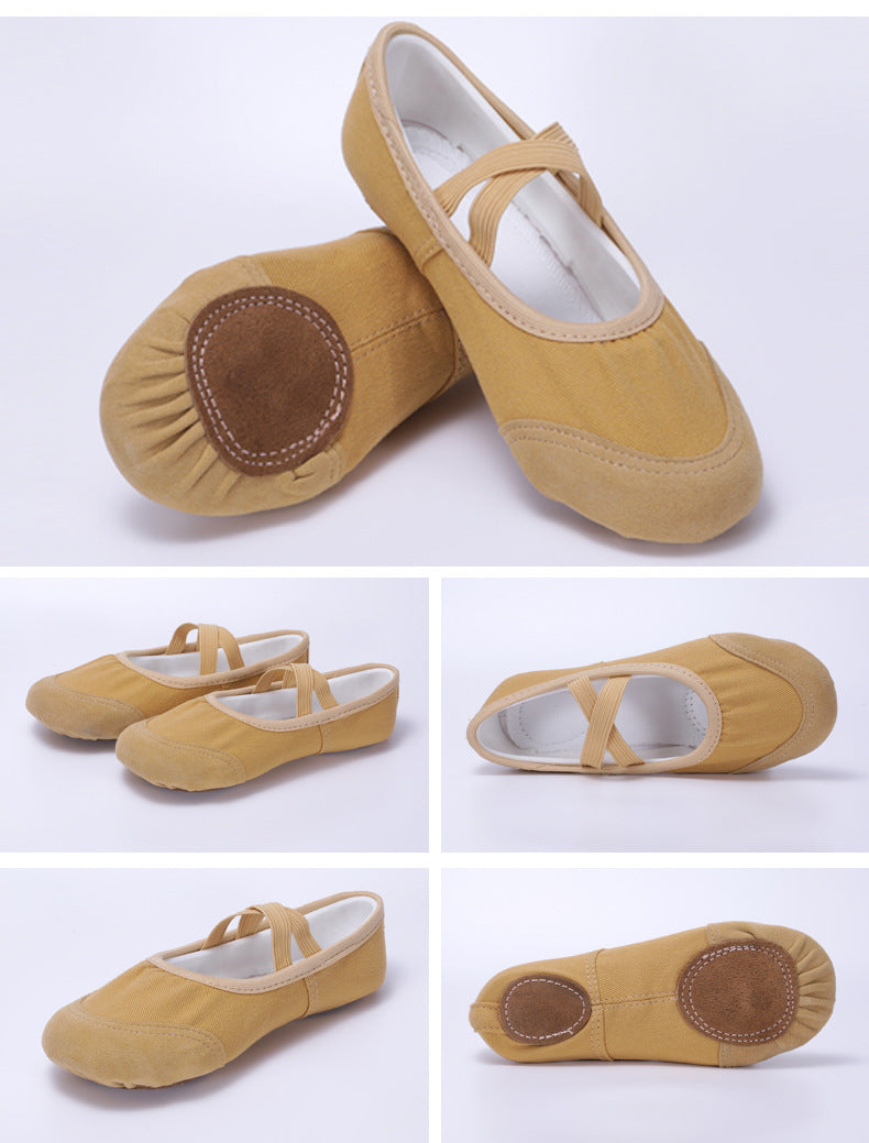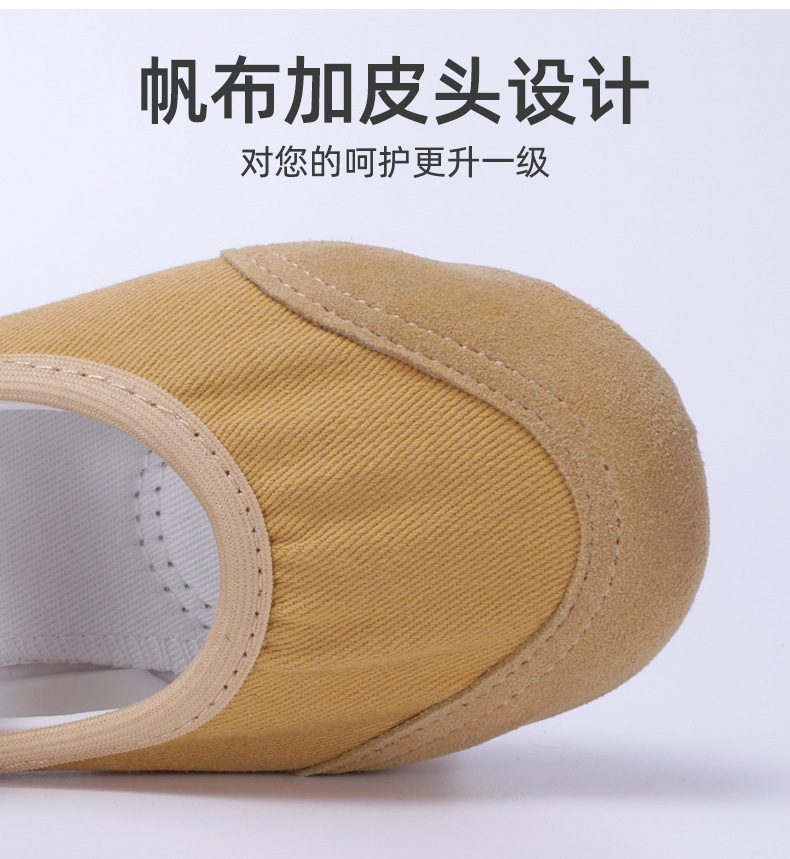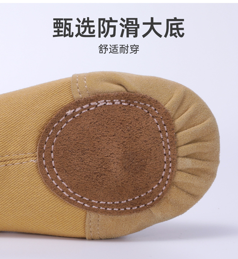 Sheepskin head camel color dancing shoes, leather head ballet shoes,kid's anti-slip dancing shoes,soft-bottom cat claw shoes