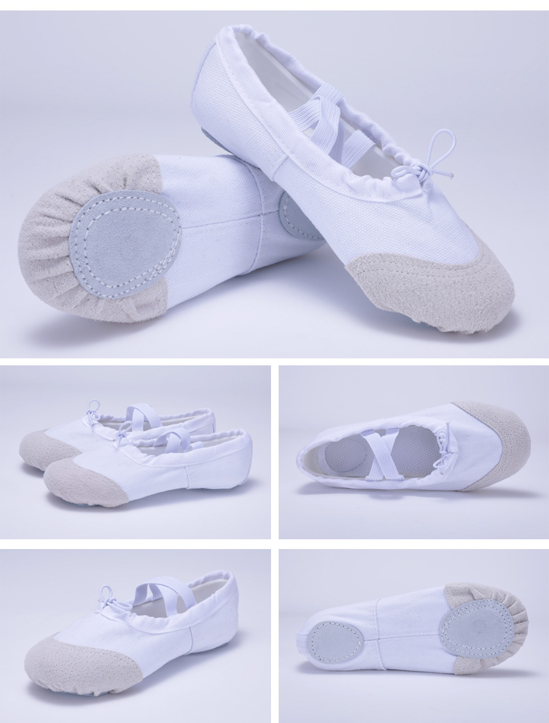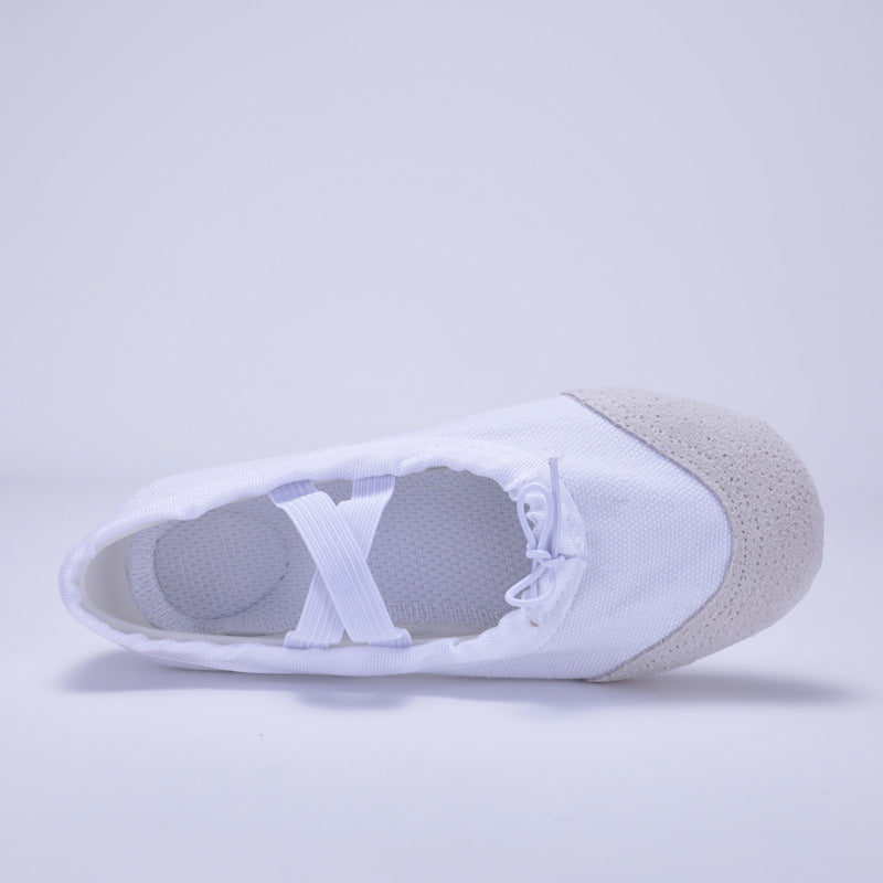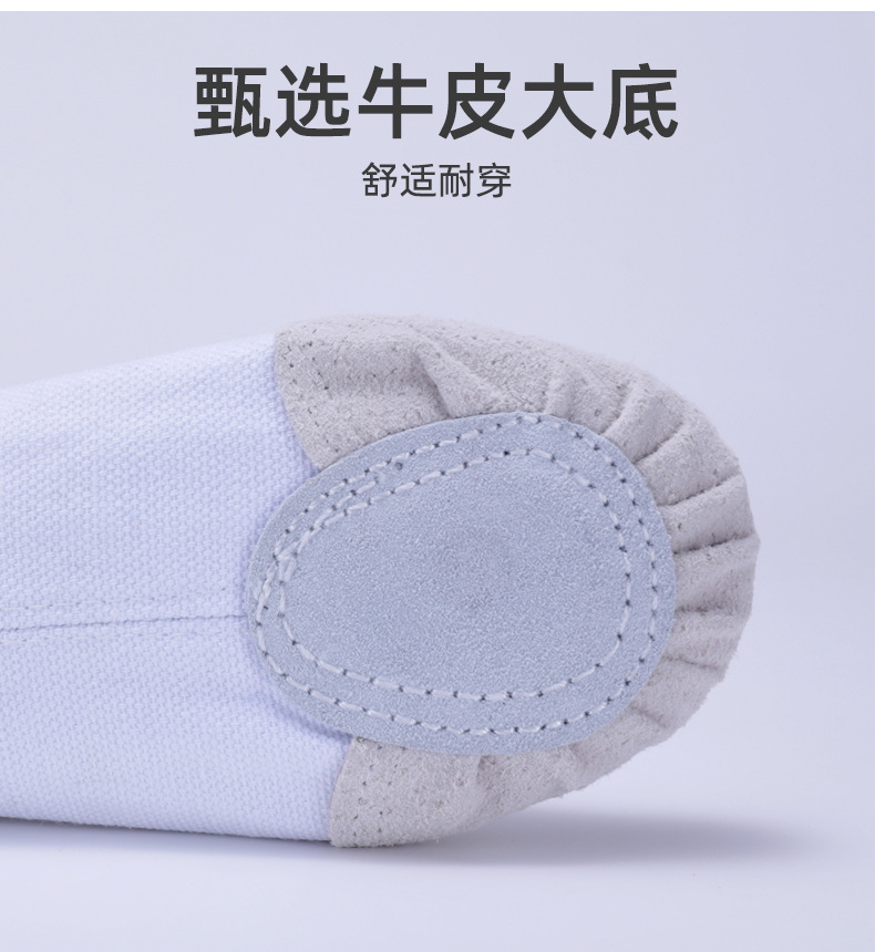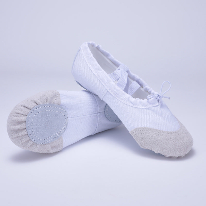 White anti-slip dance shoes, girls' soft-soled ballet shoes, cowhide head professional performance shoes